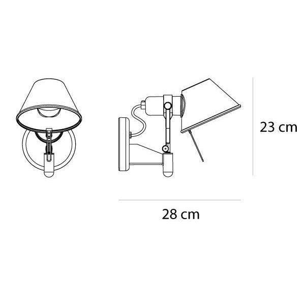 Den populære Tolomeo som praktisk vægspot. Også velegnet til læselampe. Lampehovedet kan rotere 360 grader. Montering direkte på vægudtag.