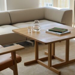 Dette kvadratiske sofabord i massivt egetræ er tegnet af Børge Mogensen i 1961. Bordene fremstår enkle og harmonisk de solide ben er fastgjort med en synlig messingskrue. Bordene bærer tydeligt præg af Shakertraditionens funktionelle enkelhed og Mogensens præcise sans for proportioner. Disse karakteristisk træk understreger Børge Mogensens ærlige tilgang til både materialer og konstruktion.