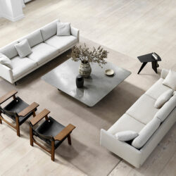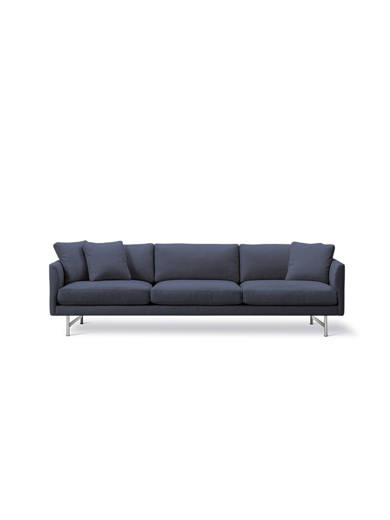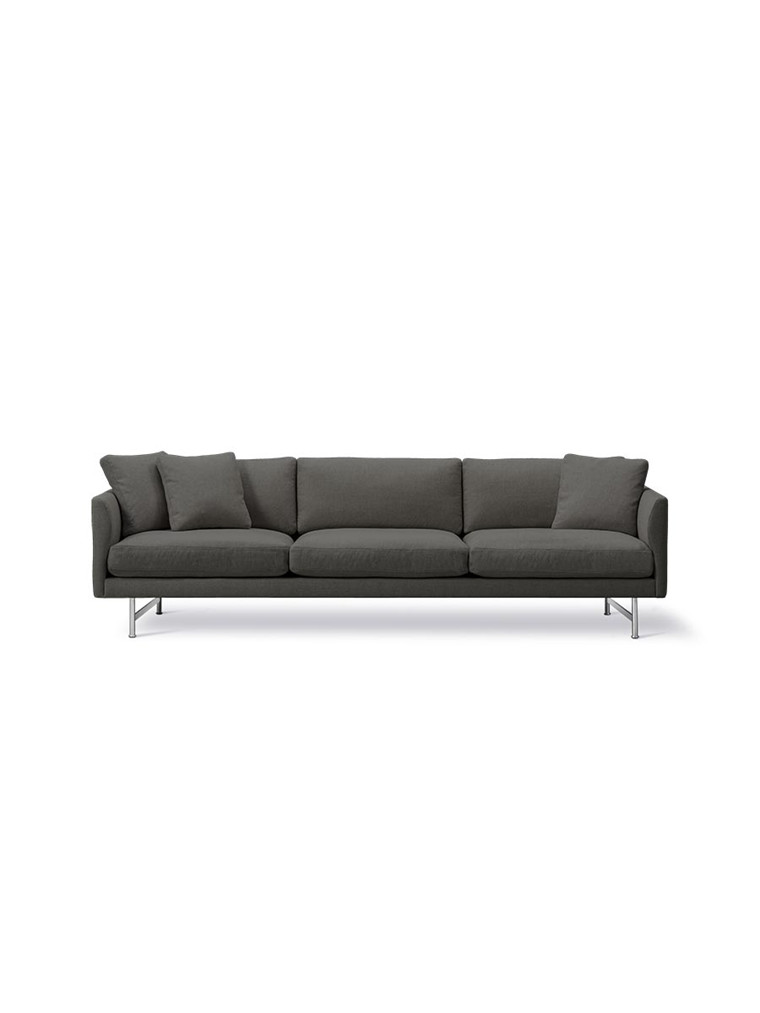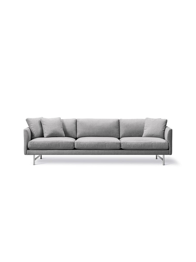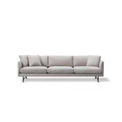 Calmo sofaen fra Fredericia Furniture er elegant og fuld af personlighed. Af smukke detaljer skal nævnes: Armlænenes inderside og deres fine runding, det diskrete søm som smyger sig fra inder- til ydersiden af armlænet og som slutter på sofaens bagside. En spændende signaturdetalje, der ligesom sofaens robuste konstruktion, eksklusive materialer og komfort afspejler Fredericia Furnitures ulastelige håndværk.