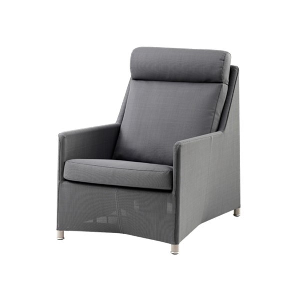 Hynderne er fremstillet i Sunbrella natté stof. Stellet betrukket med Cane-line Tex materiale.