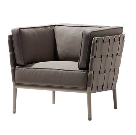 Conic lounge stolen leveres med et hyndesæt bestående af sæde og ryg i det vejrbestandige og vedligeholdelsesfrie materiale Cane-line Tex. Lounge stolen kan stå alene eller kombineres med resten af havemøblerne i Conic lounge serien.