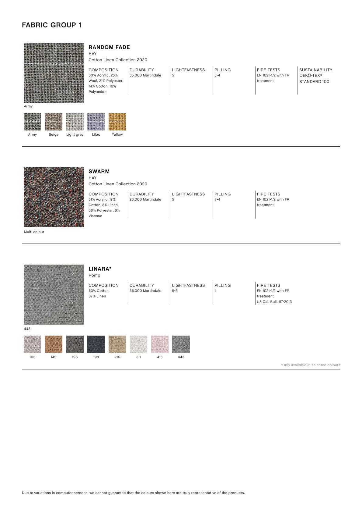 2 / Steelcut, Steelcut Trio, Melange Nap, Lola, Olavi by HAY, Flamiber, Fairway, Linen grid