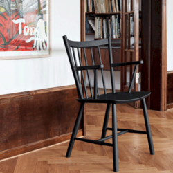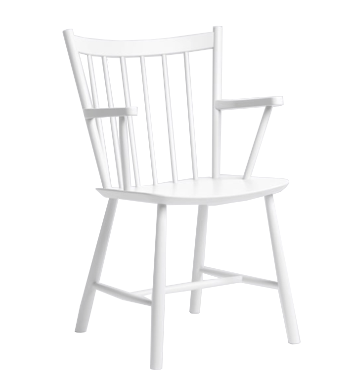 J42 stol fra Hay er designet af Børge Mogensen, som oprindelig tegnede stolen for FDB. J42 stolen har en let skrå ryg, armlæn og spindler med stor afstand som skaber et enkelt design i tidsløs kvalitet. Et bredt krydsfiner sæde og stel i massiv træ gør stolen slidstærkt og samtidig behageligt.