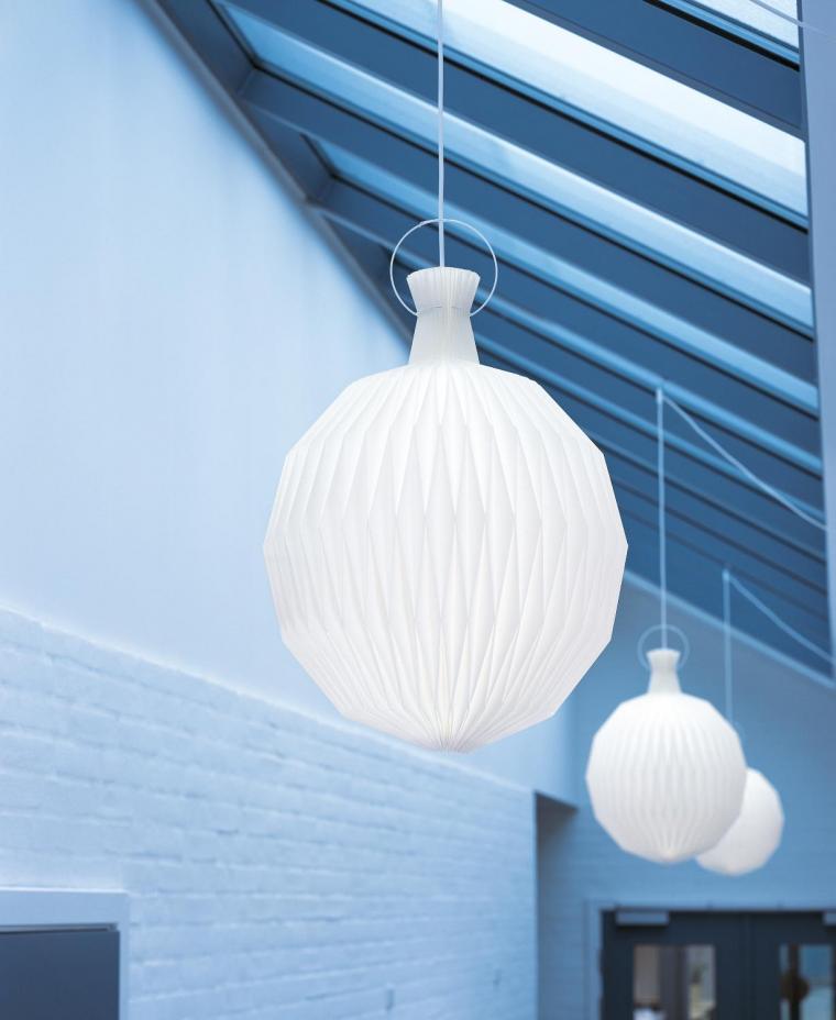 plisserede lamper fra Le Klint. Kombinationen af det håndværksmæssige, det tekniske og det