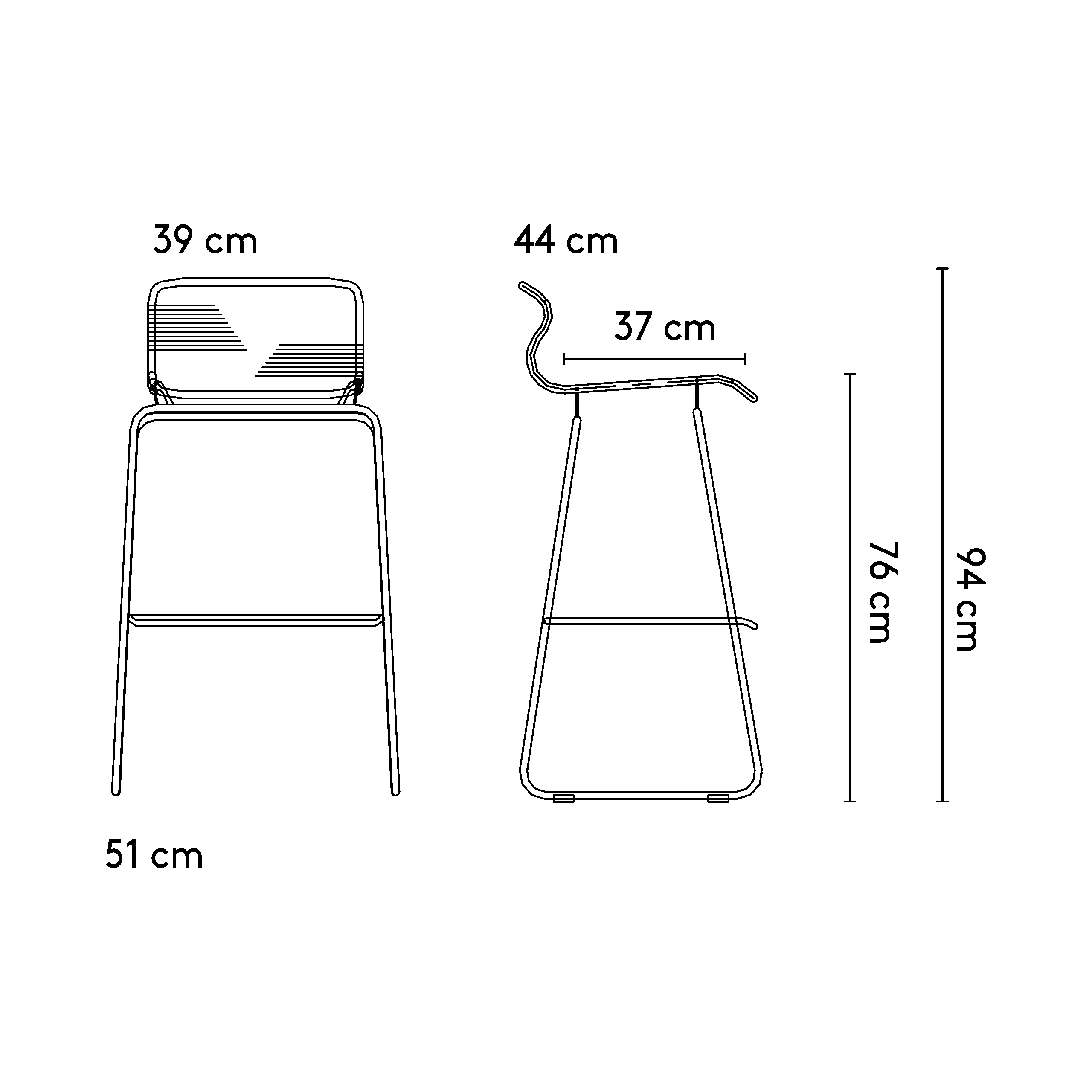 Montana – Panton One Barstol høj. Alle stole er håndflettet, og der bruges 60 – 110 meter snor til hver stol.