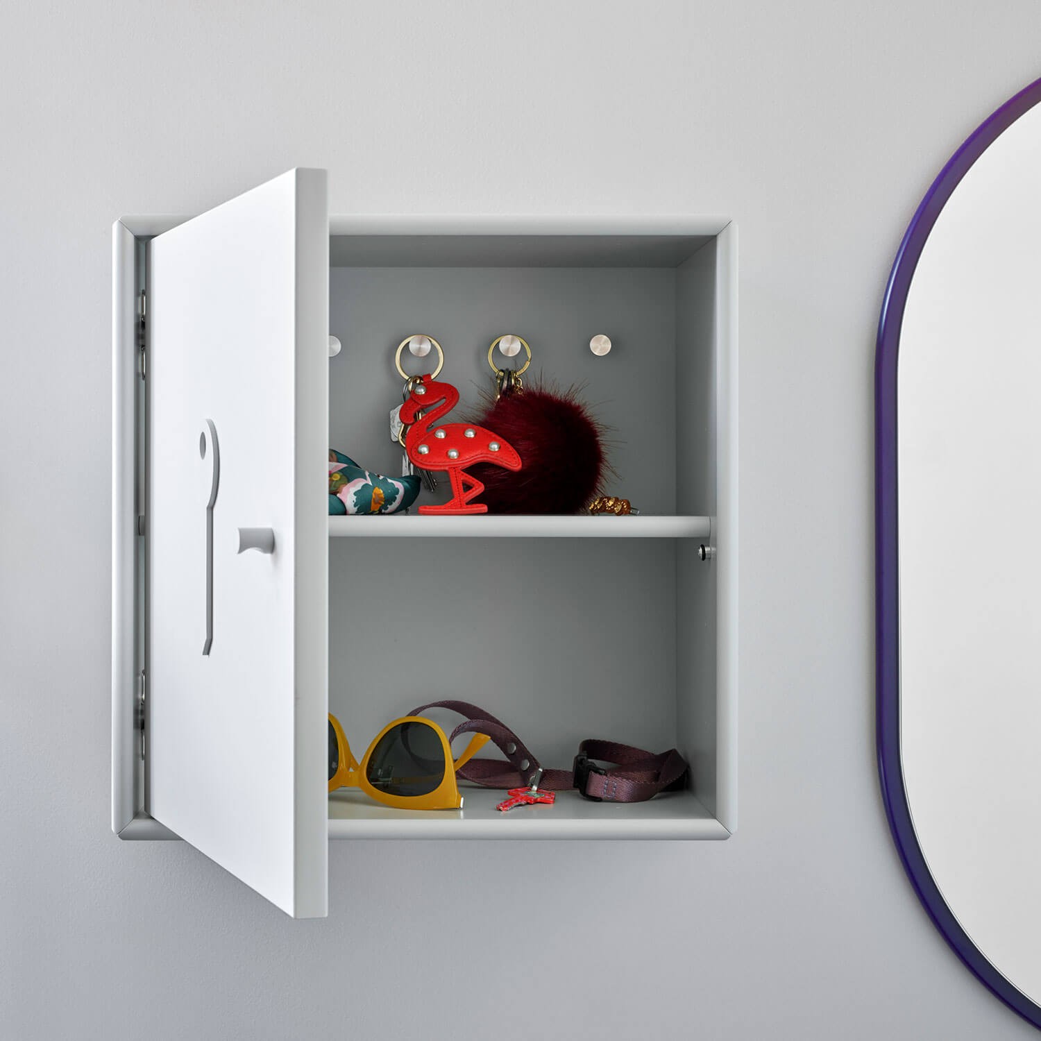 Montana Unlock er et stilrent og flot nøgleskab til entréen. Inde i skabet er der 5 knager og en hylde til at hænge og lægge nøgler på. Enkelt og flot nøgleskab.
