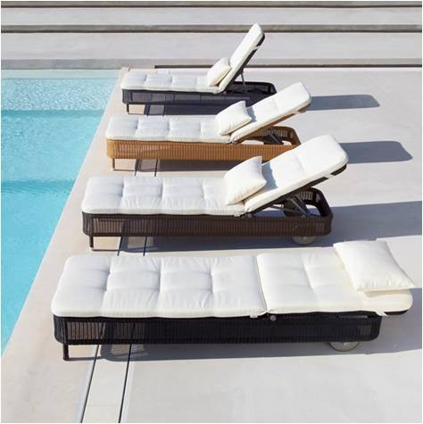 Presley er en klassisk solvogn flettet i vedligeholdelses fiber. Presley solvognen har et justerbart ryglæn, der kan indstilles i mange positioner, så du både kan sidde behageligt eller ligge ned og nyde solens stråler. Solvognen har blandt andet en helt vandret position, således at det er behageligt at ligge både på ryggen og på maven. Solvogenen har hjul og er derfor let at flytte rundt med på terrassen eller i haven.