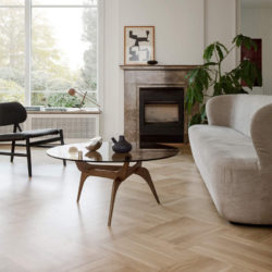 Triiio sofabordet udmærker sig ved den elegant legende trækonstruktion af benene som smukt