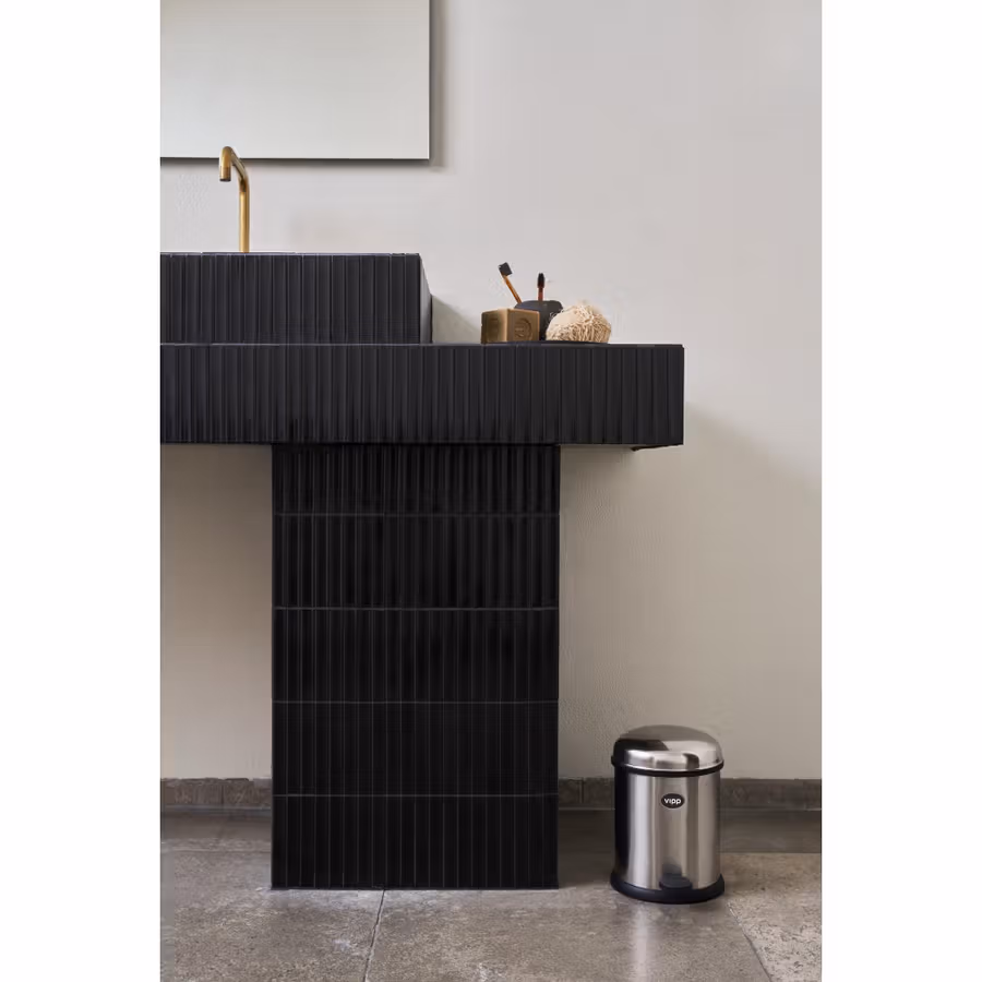 Vipp 12 – Spand 3 liter Rustfri stål.  Denne nye Vipp 12 Pedalspand med et volumen på blot 3l er velegnet til både bad, køkken og mange andre steder hvor behovet ikke er helt så stort som i andre rum.