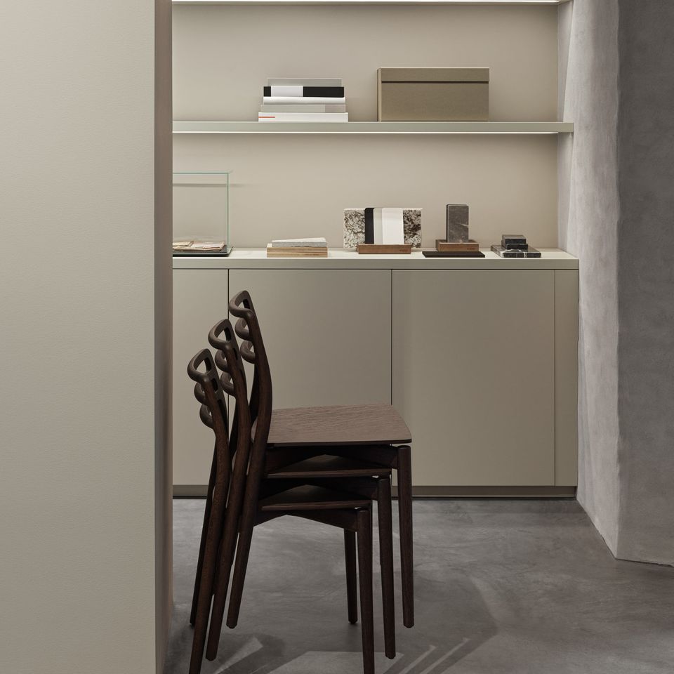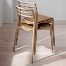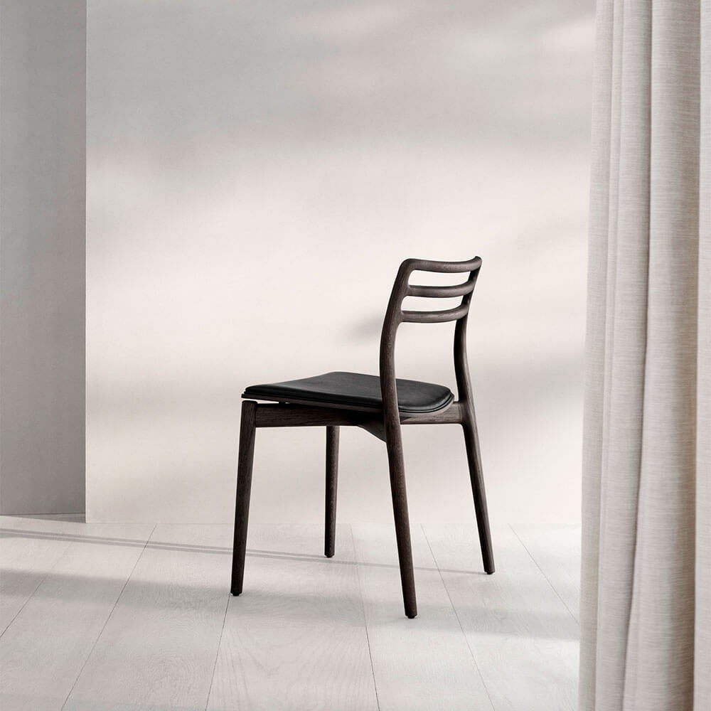 De omhyggelige detaljer ses i Cabin stolens subtile konstruktion, der kommer til udtryk gennem usynlige samlinger og som får stolen til at se ud som om den er skåret ud af det samme træstykke.