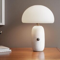 Vipp 591 Sculpture Light er navnet på denne smukke bordlampe fra Vipp. Skærmen består af trelags opalglas og bunden af massiv marmor. Lampen er det ideelle valg på sofabordet, natbordet eller i reolen. Uanset hvor den anbringes åbenbarer den sig som en smuk, dekorativ skulptur i indretningen. Lampen giver et blødt, behageligt lys grundet den LED lyskilde, som er gemt under den rillede opal skærm. Derudover kan lyset indstilles efter eget valg takket være, at der i den solide bund er integreret en raffineret lysdæmper, kontakt og stofledning.
