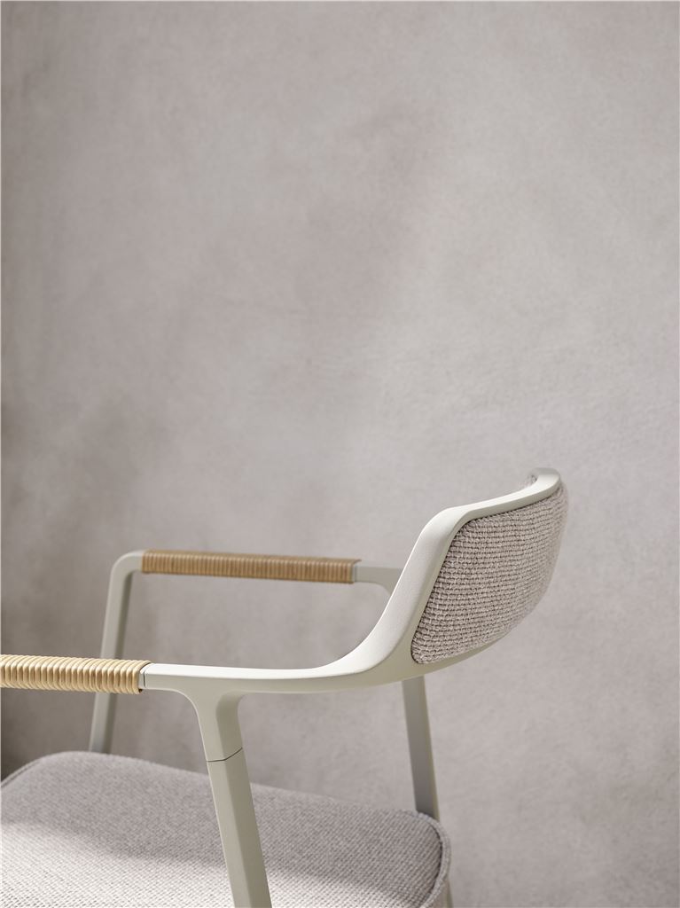 Vipp711 Open-Air havestol er designet med afsæt i den første, ikoniske Vipp451 stol. Denne havestol i det velkendte solide aluminiumsstel, nu med udendørs coating har afrundede armlæn beklædt med polyrattan. Sæde og ryglæn der er polstret med vandafvisende stof giver god komfort til de lange hyggelige ophold i det fri. Udtrykket er mildt og harmonisk med de lyse, sandfarvede nuancer. Designet har skarpe og rene linjer, hvilket gør at stolen passer perfekt ind i den moderne stil samt indretningen af terrassen med et skandinavisk look. Gå sommeren i møde med denne lækre Vipp711 Open-Air havestol.